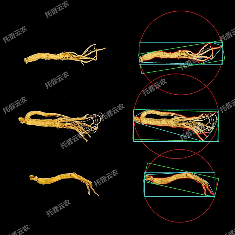 (1) 中藥材形態(tài)解析:基于先進(jìn)視覺算法,在3秒內(nèi)自動(dòng)完成目標(biāo)識(shí)別與分割,精準(zhǔn)解析中藥材輪廓、直徑、長(zhǎng)度、寬度、周長(zhǎng)、顏色、數(shù)量等關(guān)鍵表型性狀。